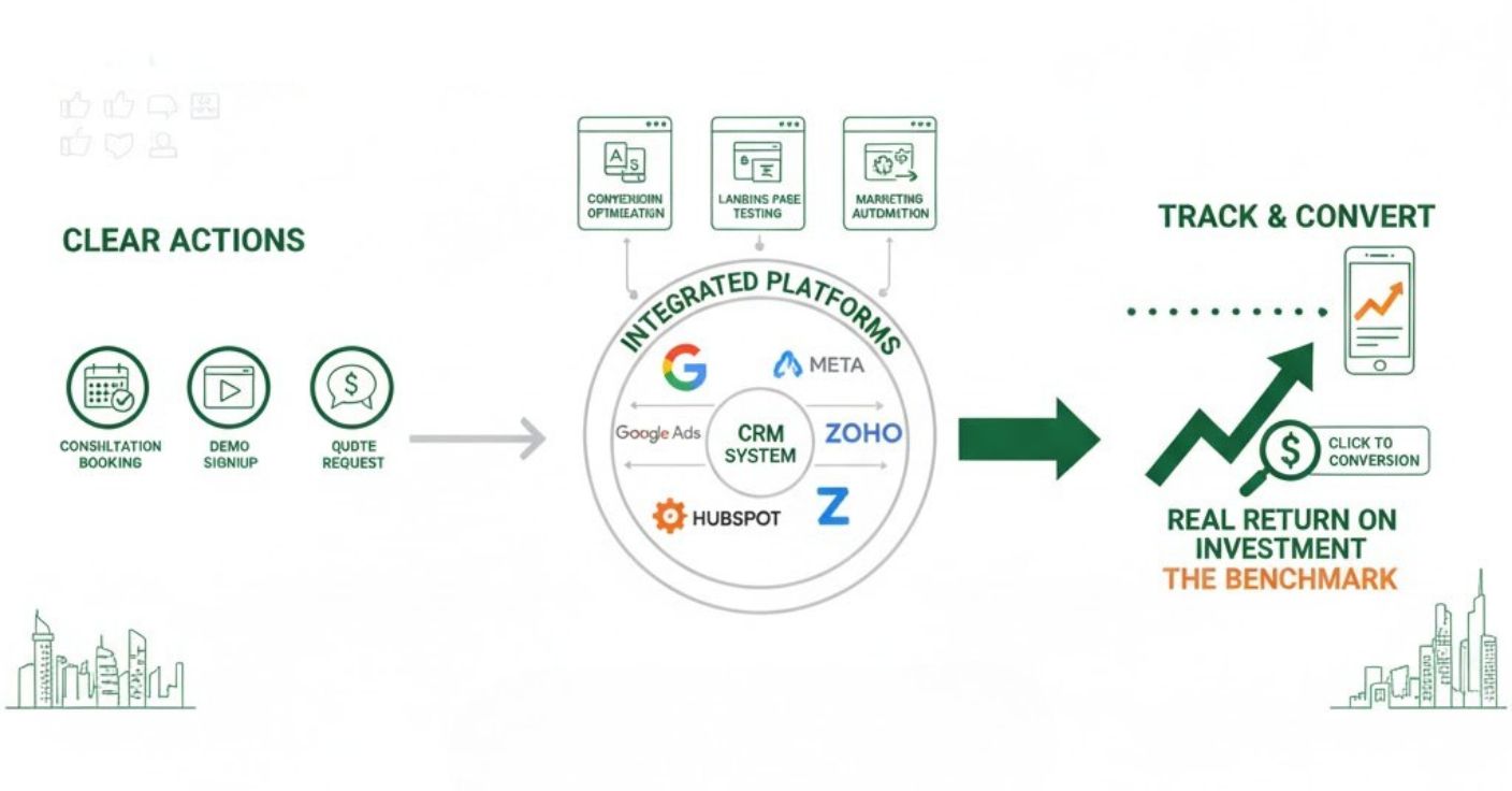 Modern UAE businesses are no longer running disconnected campaigns. They are building complete marketing systems that connect every touchpoint, from paid ads to CRM automation.